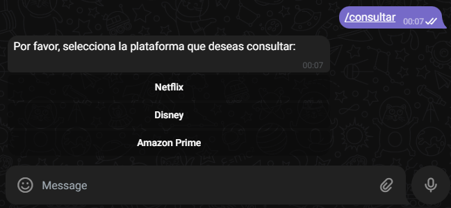 Somos expertos en el desarrollo de bots para Telegram, scripts y soluciones web personalizadas. Ofrecemos bots avanzados capaces de gestionar múltiples plataformas como Netflix, Disney+, Prime Video, entre otras.